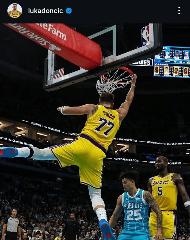 东契奇在湖人过得相当开心,昨天战胜黄蜂,暴砍 38分6篮板7助攻1抢断,还有一次双手暴扣,东契奇得意地晒了出来